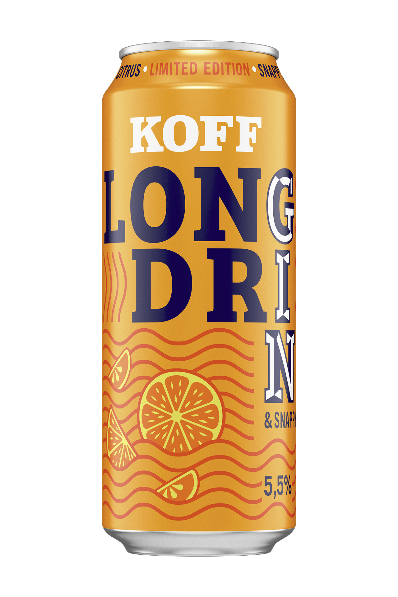 KOFF Long Drink Snappy Citrus on pakattu kuuden 0,33 litran tölkin monipakkaukseen ja 0,5 litran yksittäisiin tölkkeihin. Tuotteen jakelu alkaa 4.8.